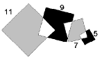 Guillermo tiene muchos triángulos iguales de papel (con ángulos de 100º, 40º y 40º) y con ellos construye una espiral como se muestra en la figura. El primer triángulo que pone es el triángulo 0 y depués va pegando los triángulos 1, 2, 3, ... sin importar si se sopreponen. ¿Qué número tendrá el primer triángulo que quede exactamente en la misma posición que el triángulo 0?